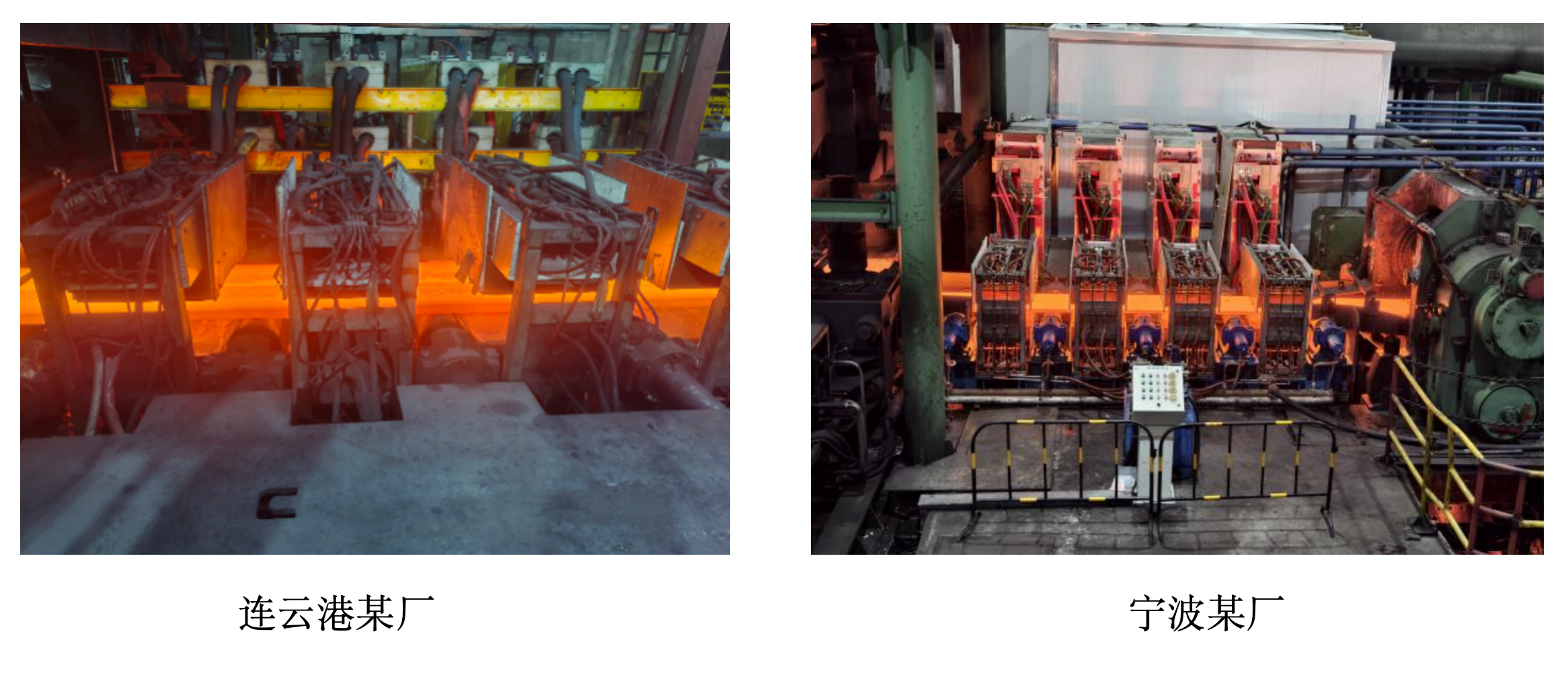 在拉速0.6m/s~0.8m/s的生产条件下,成功实现48mm厚、610mm宽不锈钢板带一次通过边部升温30℃~50℃,显著改善边部温度低轧制后的碎裂问题,提升5%~8%的实际产能。适用于201不锈钢、 1Cr13、 3Cr13、 5Cr13马氏体不锈钢(耐热耐腐蚀不锈钢、高强度)、普碳钢(Q235)等板材,为国内首个板带电磁感应加热成功验收项目,并持续长期使用。