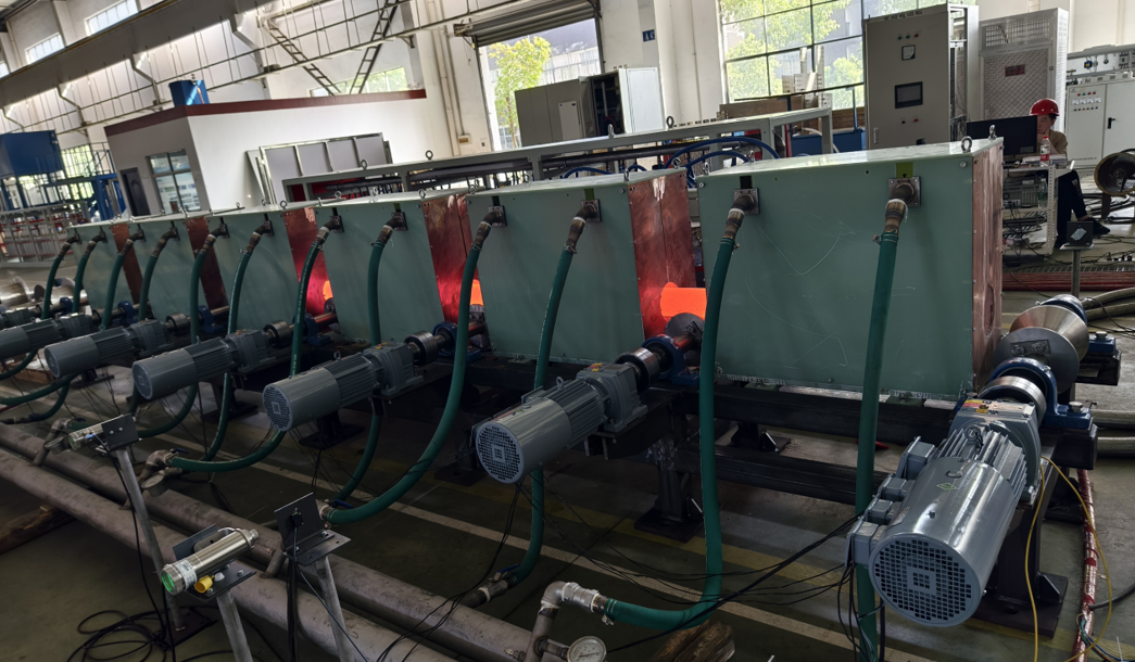 有色金属在线电磁感应加热系统采用电磁加热技术和智能变频控制技术,专为各类有色金属棒料设计,应用于精轧或粗轧前工序,提供整体加热与精准补热双重功能,其中整体加热可快速提升棒料温度,大幅提高生产效率,满足连续化生产需求,精准补热可有效改善棒料芯表温差和轴向温差,确保轧制时棒料的温度均匀性,提升轧制后的产品质量。