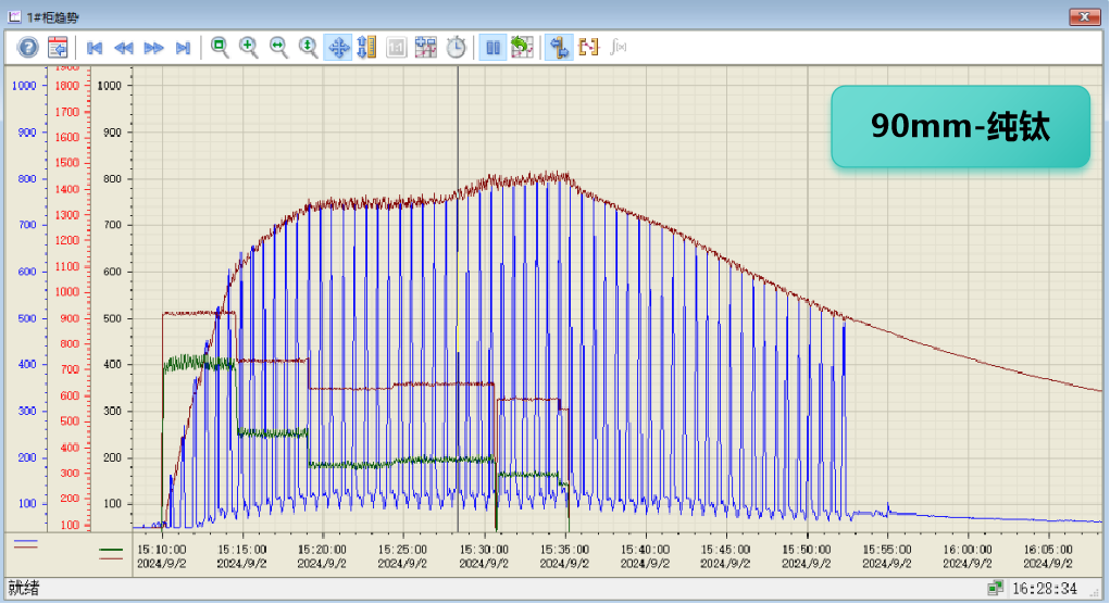 生产牌号:钛及钛合金。尺寸:φ50mm~φ52mm,拉速:0.38m/s,补热温升820℃~950℃。于2024年底验收落地投产。